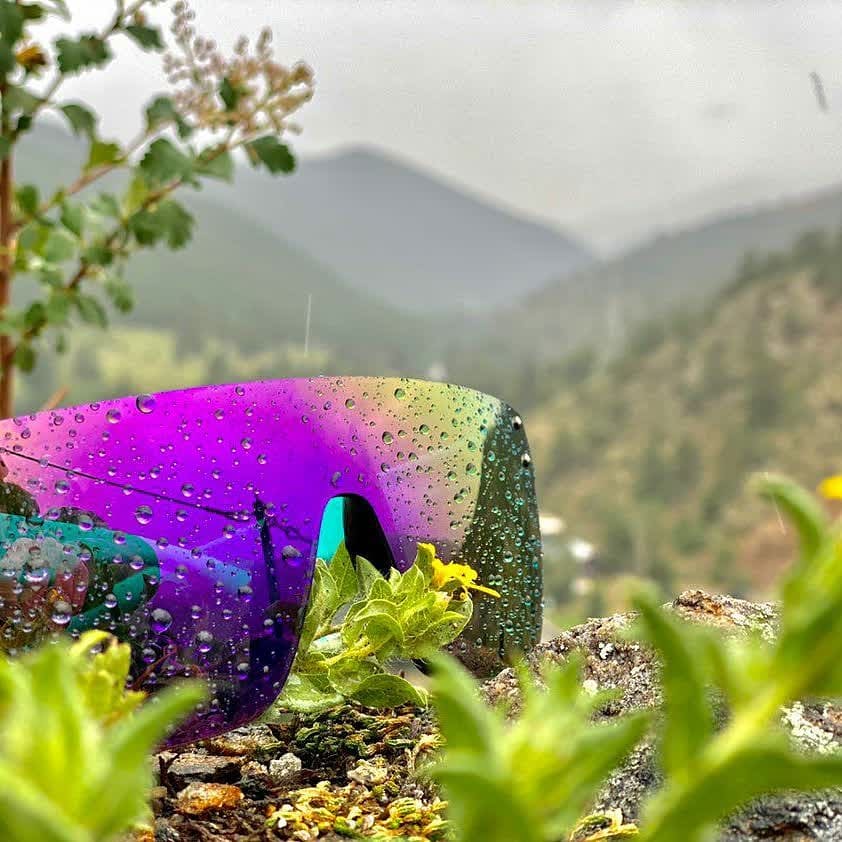 The Tropical Druids channel jungle heat, mountain air, and electric sunsets into a bold mirrored lens that shifts from deep violet to sun-washed gold.
